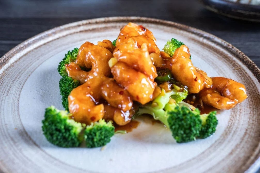 Batter fried chicken breast cut in bite size morels mixed with Chinese vegetables.